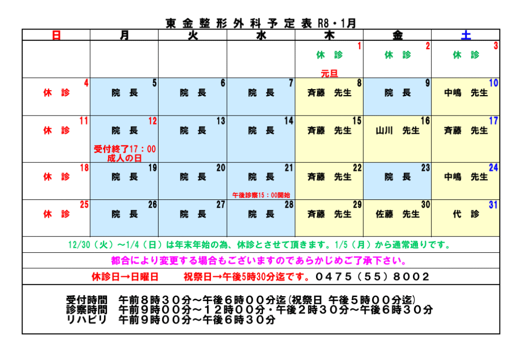 受付時間・診療時間が都合により急遽変更する場合がございます。受付時間終了間際の受診を検討されている場合は事前にご確認いただくか、早めの時間帯での受診をご検討ください。