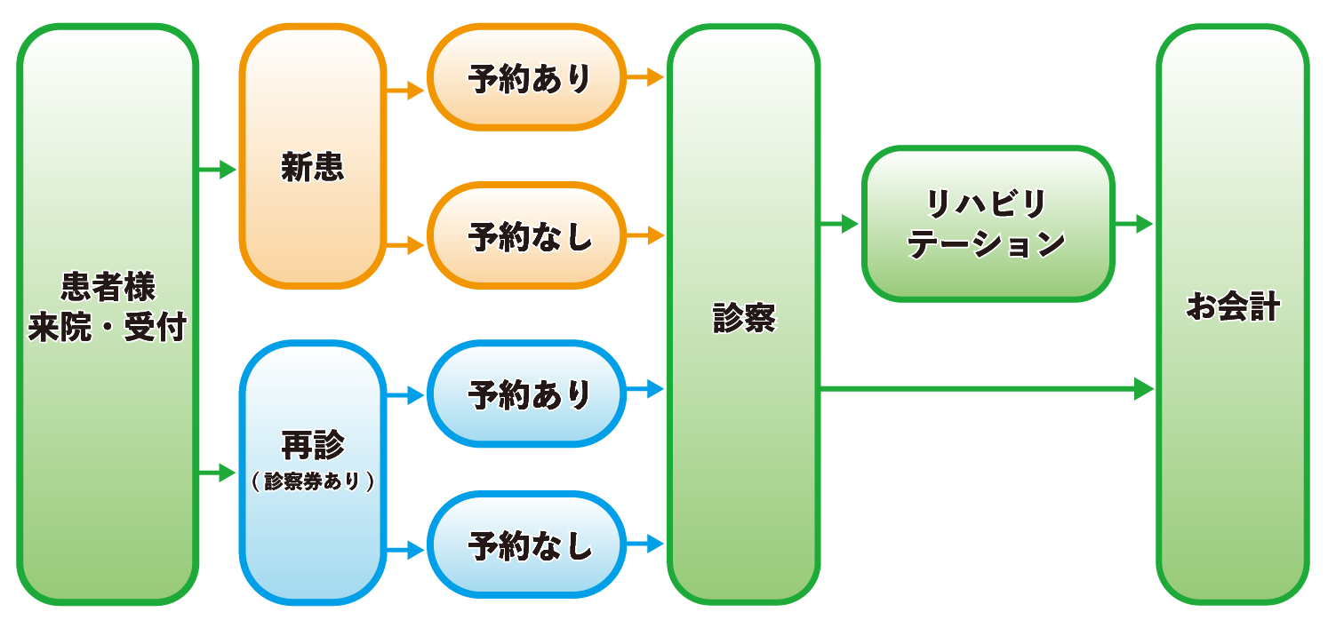 • 新患・再診に関わらず、診察の順番は当日の受付順となります。